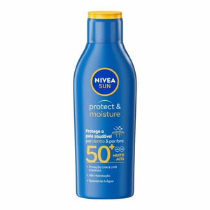 Le lait solaire NIVEA SUN Protect & Hydrate SPF 50+ est la solution idéale pour ceux qui recherchent une protection solaire fiable alliée à un soin hydratant. Sa formule avancée protège immédiatement la peau contre les effets nocifs du soleil, y compris les coups de soleil et le vieillissement prématuré dû aux UVA/UVB.