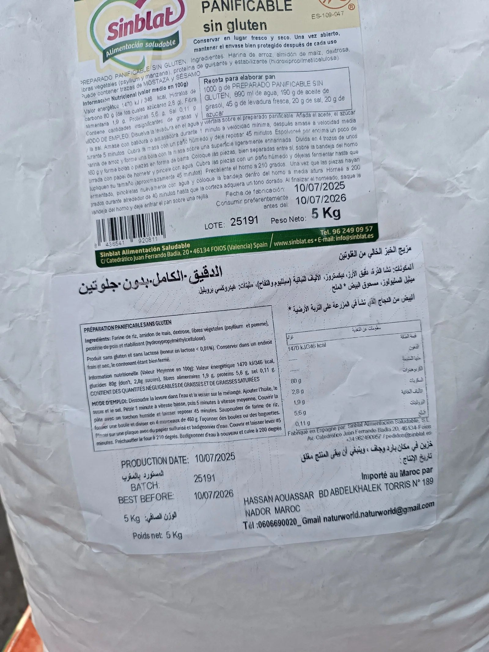📌 Disponible Chez Lexus Market à Casablanca – La Farine Complète Sans Gluten Sinblat 5 kg est la solution idéale pour une cuisine saine, gourmande et sans gluten, adaptée à toute la famille et aux professionnels.