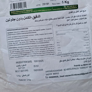 Farine complète sans gluten Sinblat, farine sans gluten 5 kg, farine pour pain sans gluten, farine naturelle riche en fibres, alternative au blé, alimentation sans gluten Maroc, farine pour pâtisserie sans gluten, farine Sinblat Casablanca, farine sans gluten pour recettes maison.